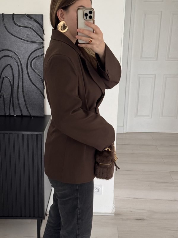 59,90 €Le prix initial était : 59,90 €.49,90 €Le prix actuel est : 49,90 €.Blazer oversize long, Le blazer fait 128cm de longueur, Couleur marron, Contient une doublure, et des épaulette, Existe en S/M et M/L, Le mannequin mesure 1m67 et fait 64kg, porte du S/M