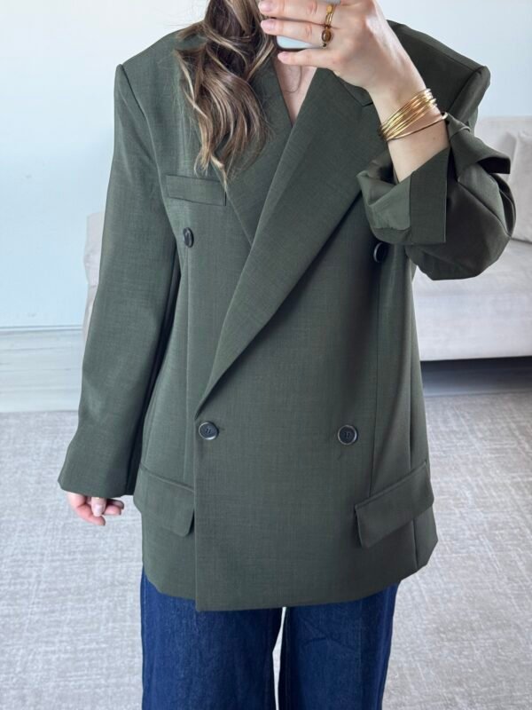 - 29 % Off 39,50 €Le prix initial était : 39,50 €.27,90 €Le prix actuel est : 27,90 €.Blazer over size, Le blazer est ample, conçu pour arrivé sous la hanche et fait 80 cm longueur, col revers et manche revers, contient 2 rabats, épaulette des deux côtés entièrement doublé, Taille unique ( convient jusqu’au 44) Le mannequin mesure 1m67 pour 64kg.