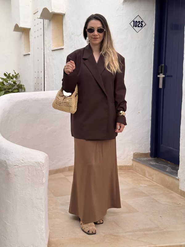 Jupe en soie, La jupe fait 100 cm de longueur, Fermeture à la taille sur le côté de la jupe, 95%polyester , 5% spandex Existe en S, M, L, XL Le mannequin mesure 1m67 et fait 64kg, porte du M