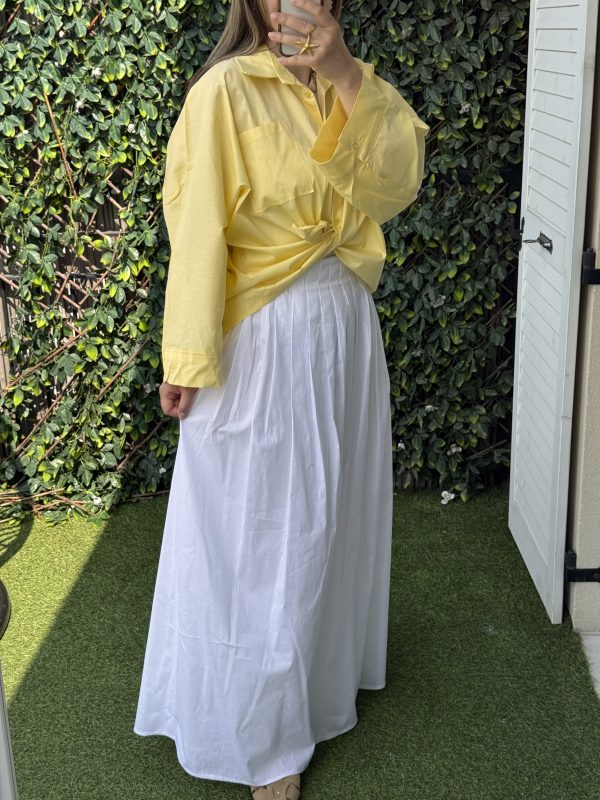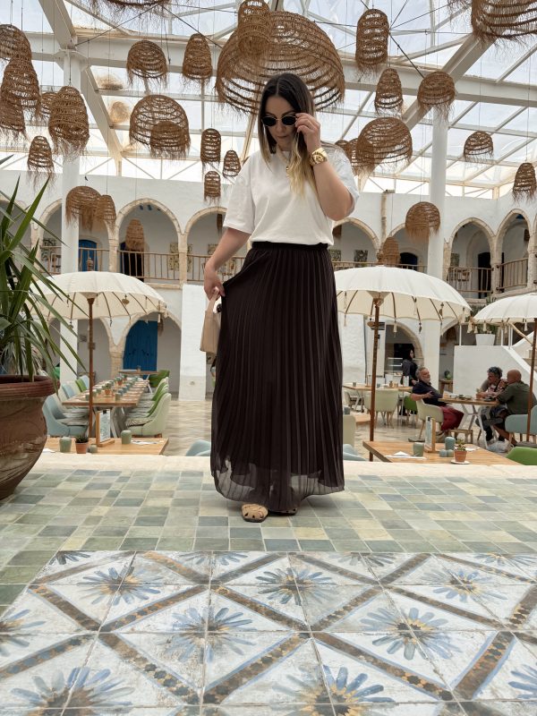 Jupe plissée longue et ample, Contient une doublure, Elastique à la taille, Longueur 103,5 cm, Taille unique (convient du 34 au 46), Le mannequin mesure 1m67 pour 64kg.